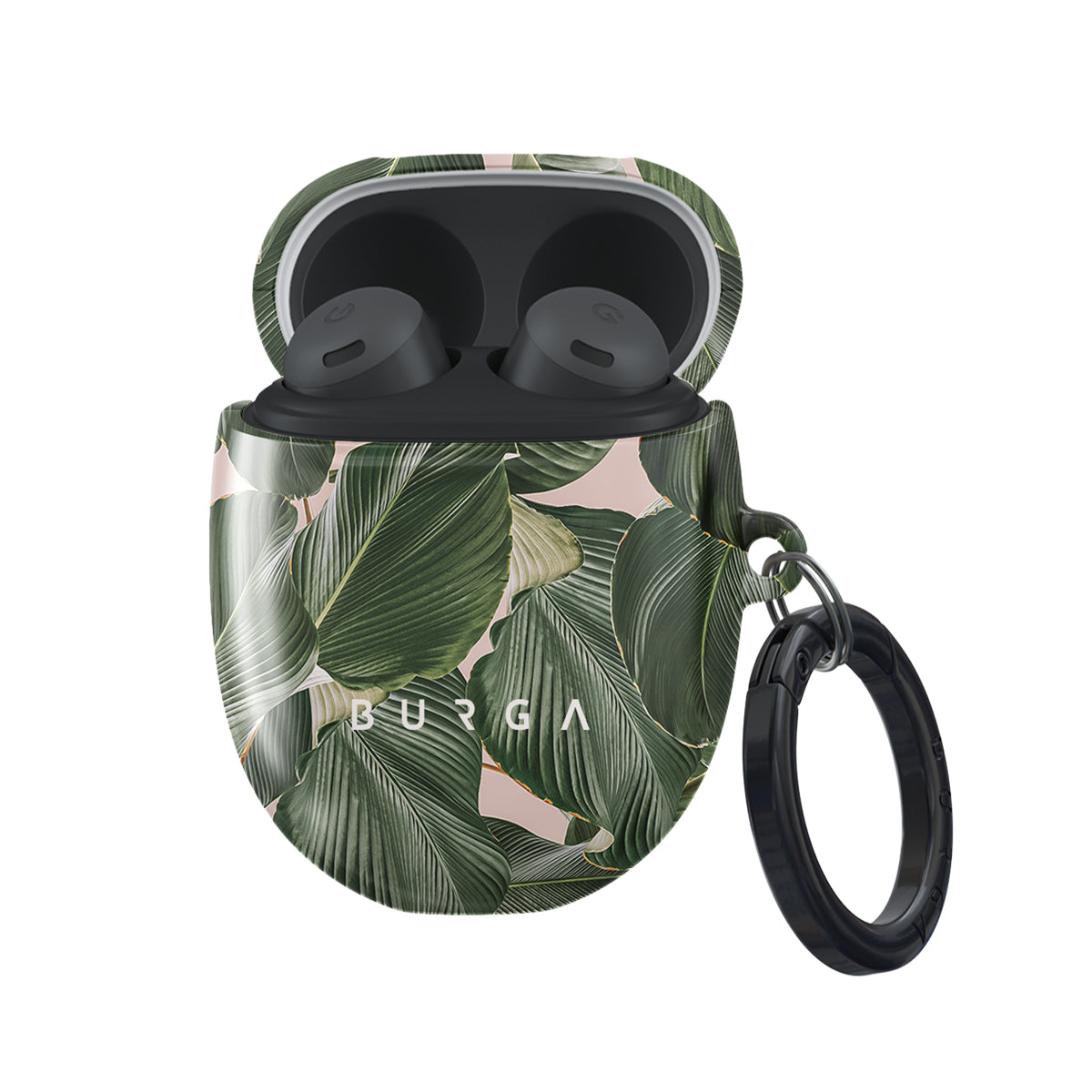 Soft creme background with banana leaves on top is a perfect design duo for a protective Google Pixel Buds Pro case cover. The design nspired by glorious nature is a must for every fashion lover, and the case cover that adds style and protection is just a perfect combination. Our case fits perfectly snug around Google Pixel Buds Pro . “Like a glove!” one might say. And it won’t disrupt the wireless charging capabilities of the newer model. There’s even an LED light indicator to prove it (don’t worry, wired charging still works, too). When fitted, the BURGA case will protect the delicate Google Pixel Buds Pro case beneath it from scratches, bumps, and drops while remaining scratch-free itself. Our signature design pattern prints are High Quality, and will never peel or fade away- thanks to our unique printing technology. And finally, a handy carabiner is there to make your life easier and more convenient: just snap it around your keys or belt loop and tackle the day head-on. Your music is right there by your side when you need it.