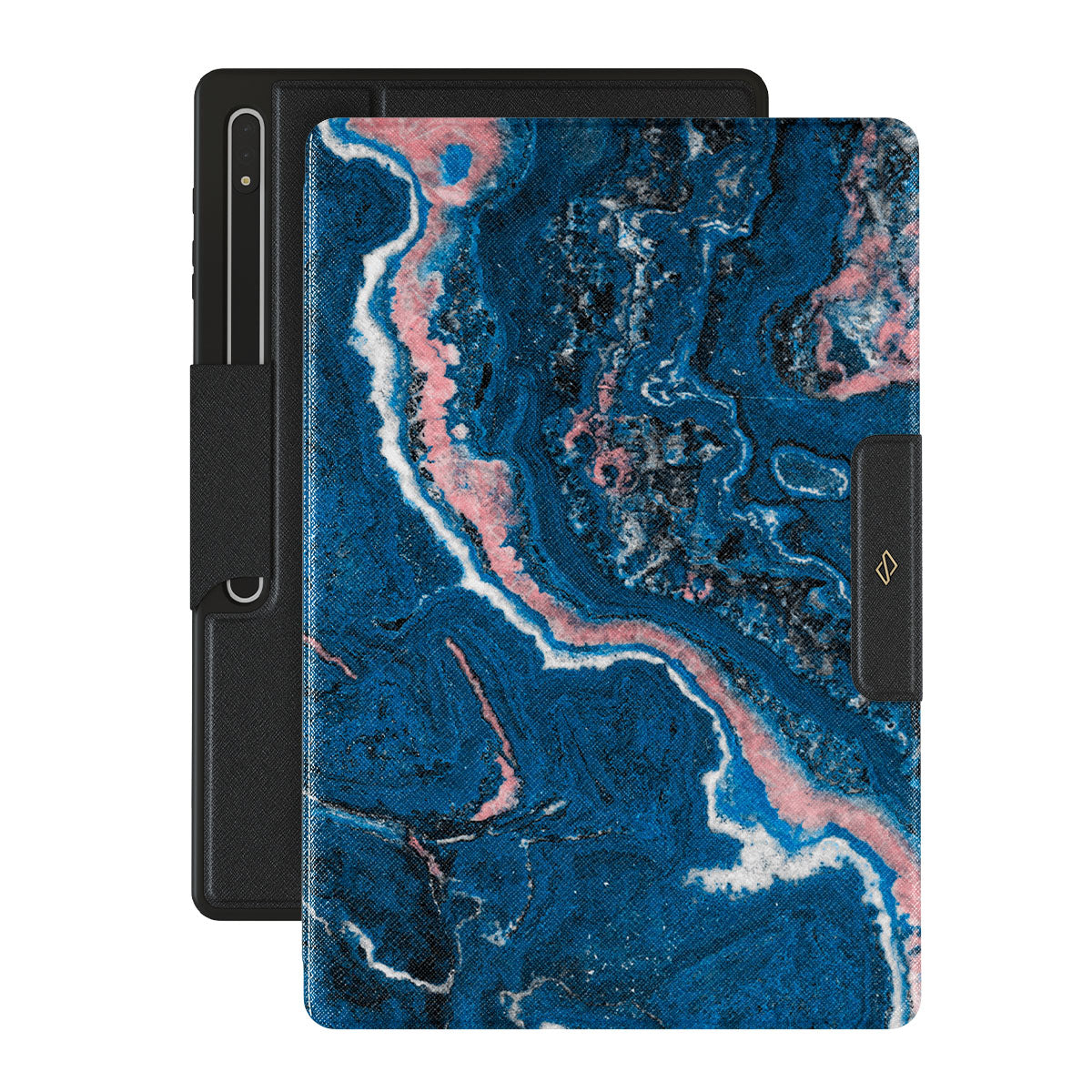 Electric indigo blue meets white, and pastel pink swirls in a unique marble pattern in our Blue Lagoon Samsung Galaxy Tab S10 Ultra folio case. The modern take on a blue marble trend will look aesthetically pleasing on your device while offering durable protection from any falls.