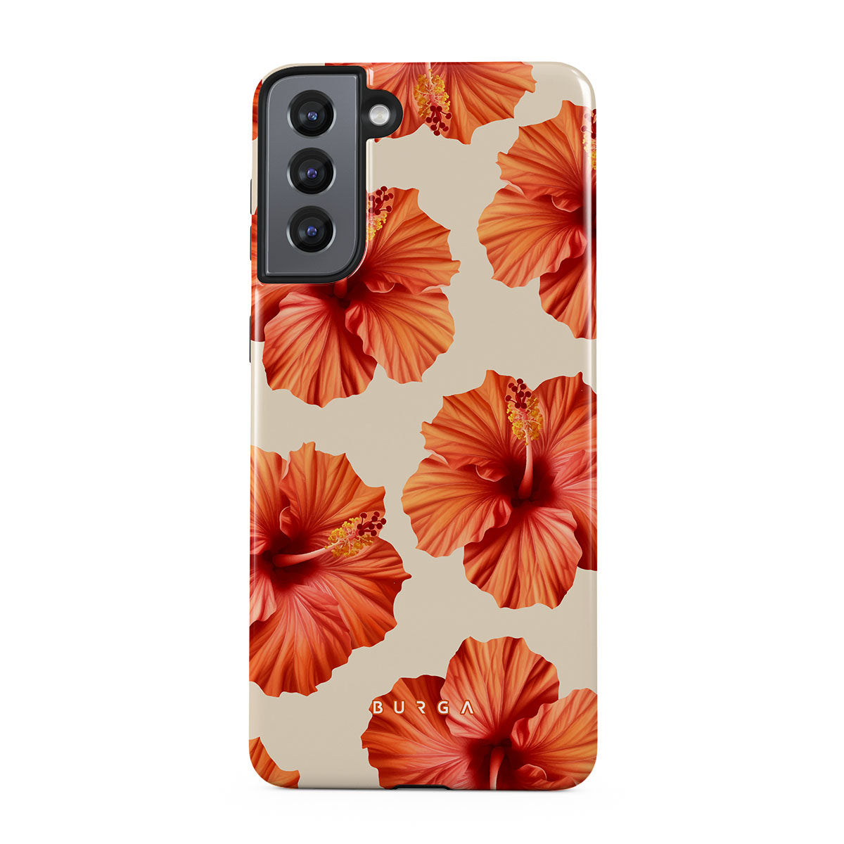 Transport yourself to a lush tropical escape with Bonita. Featuring bold, beautiful hibiscus blooms that pop against a creamy backdrop, this Samsung Galaxy S21 phone case design is perfect for those who dream of vibrant, floral beauty and exotic adventures.