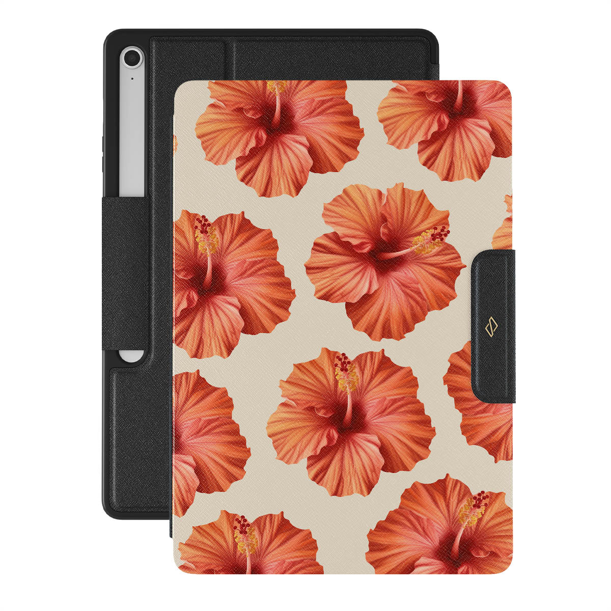 Transport yourself to a lush tropical escape with Bonita. Featuring bold, beautiful hibiscus blooms that pop against a creamy backdrop, this Samsung Galaxy Tab S10+ FE folio case design is perfect for those who dream of vibrant, floral beauty and exotic adventures.