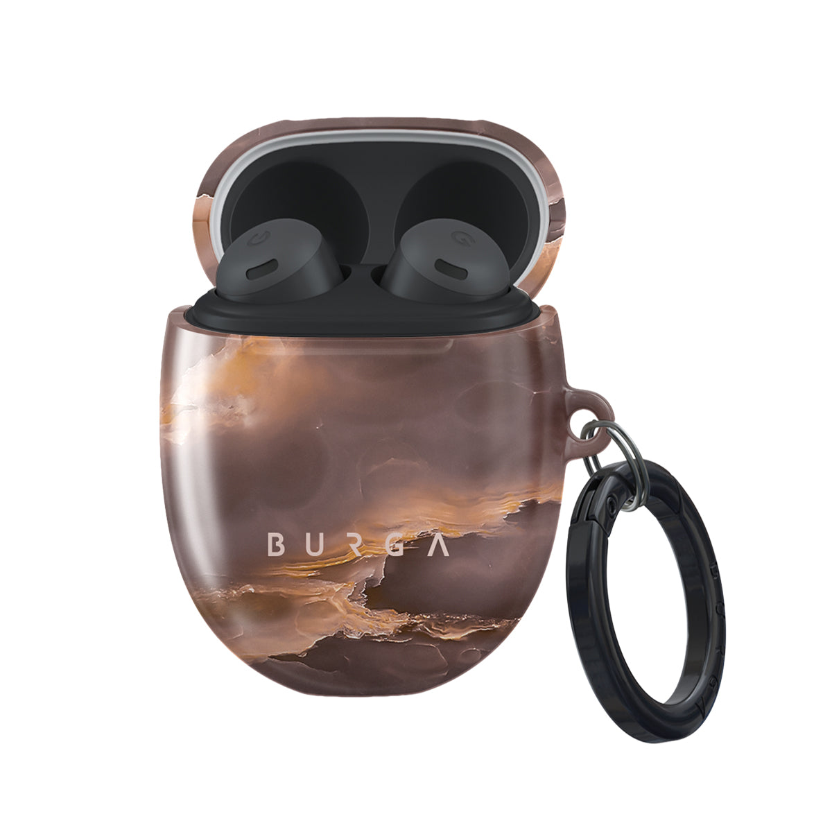 Our brown marble Google Pixel Buds Pro case cover was inspired by the warm evenings sitting by the bonfire. Being by the fire is an excellent way to relax, and keeping a stylish accessory by your side will allow you to keep such memory at a close reach while protecting y Our case from any damage. Our case fits perfectly snug around Google Pixel Buds Pro . “Like a glove!” one might say. And it won’t disrupt the wireless charging capabilities of the newer model. There’s even an LED light indicator to prove it (don’t worry, wired charging still works, too). When fitted, the BURGA case will protect the delicate Google Pixel Buds Pro case beneath it from scratches, bumps, and drops while remaining scratch-free itself. Our signature design pattern prints are High Quality, and will never peel or fade away- thanks to our unique printing technology. And finally, a handy carabiner is there to make your life easier and more convenient: just snap it around your keys or belt loop and tackle the day head-on. Your music is right there by your side when you need it.