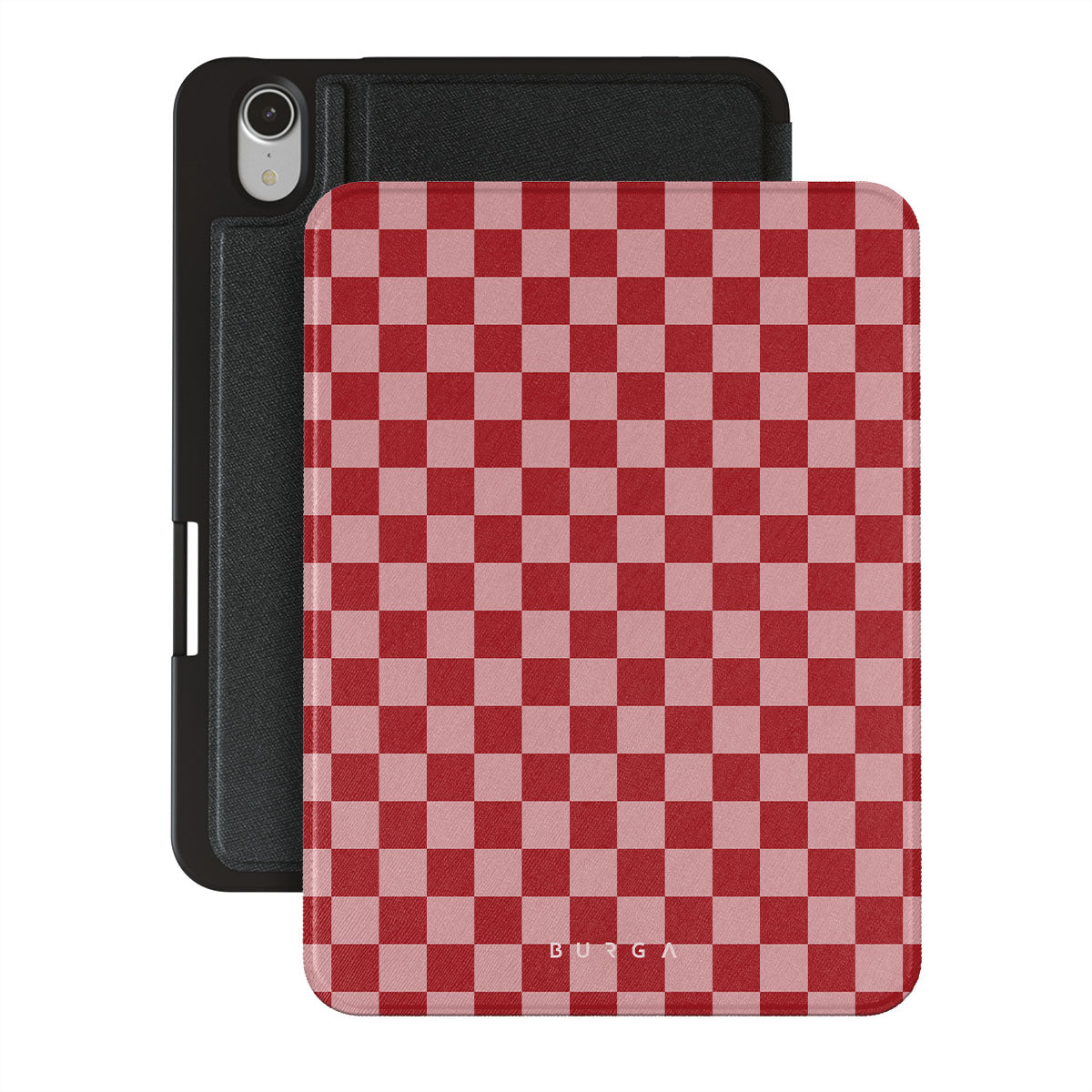Bold, strong, and never on hold! Our Cheerleader - {iPad model iPad Mini 8.3 (A17 Pro/6th Gen) 2021 folio case design will turn your iPad into the perfect accessory! The red checkered pattern adds that additional spark to your style while keeping your iPad safe.