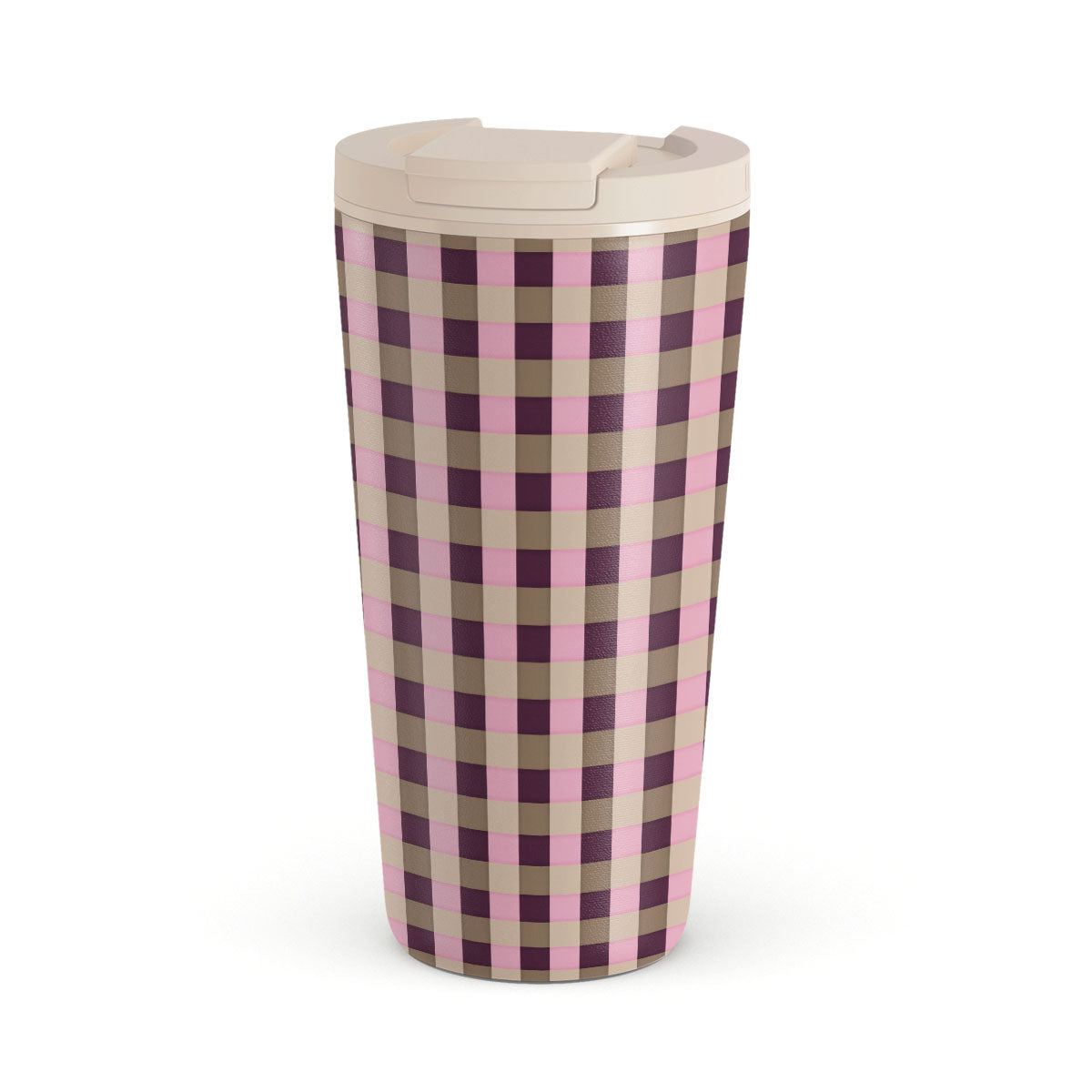 This design features: pink and burgundy plaid pattern, modern checkered style.