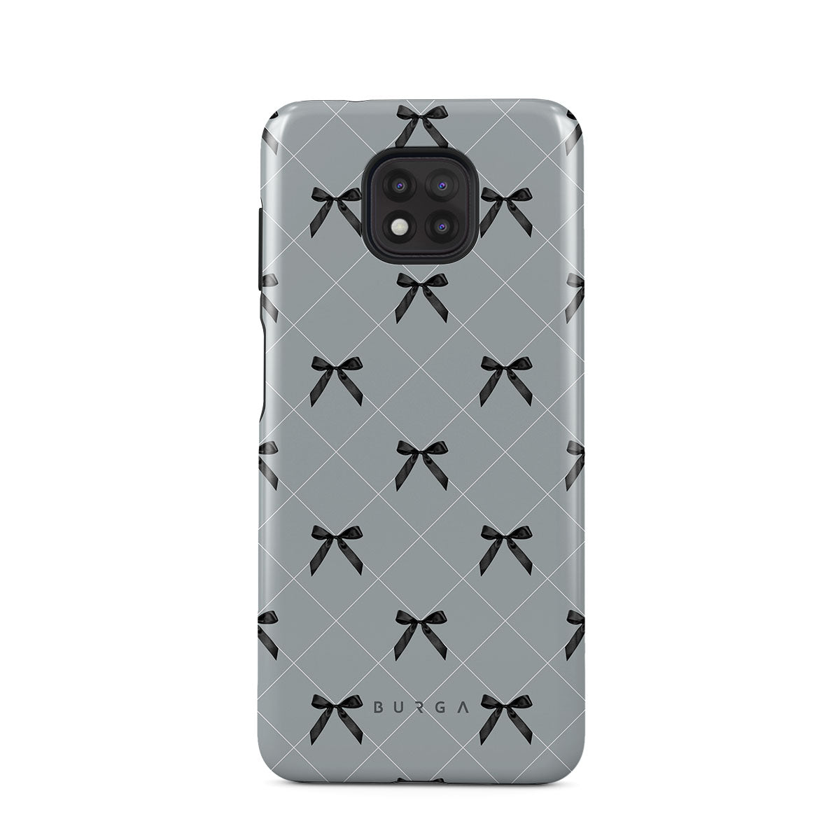 A subtle hint to a world of dance and soft melodies. Crisscrossing bows over a muted gray tone capture the flirtatious essence of the coquette-core aesthetic. Playful and sweet, our Coquette Motorola Moto G Power 2021 phone case design is perfect for those who find beauty in the details.