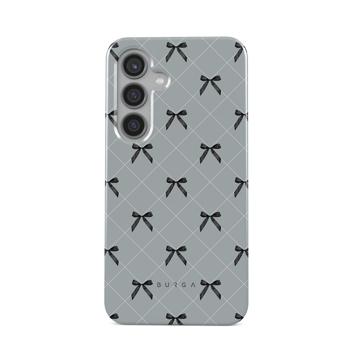 A subtle hint to a world of dance and soft melodies. Crisscrossing bows over a muted gray tone capture the flirtatious essence of the coquette-core aesthetic. Playful and sweet, our Coquette Samsung Galaxy S24 Plus phone case design is perfect for those who find beauty in the details.
