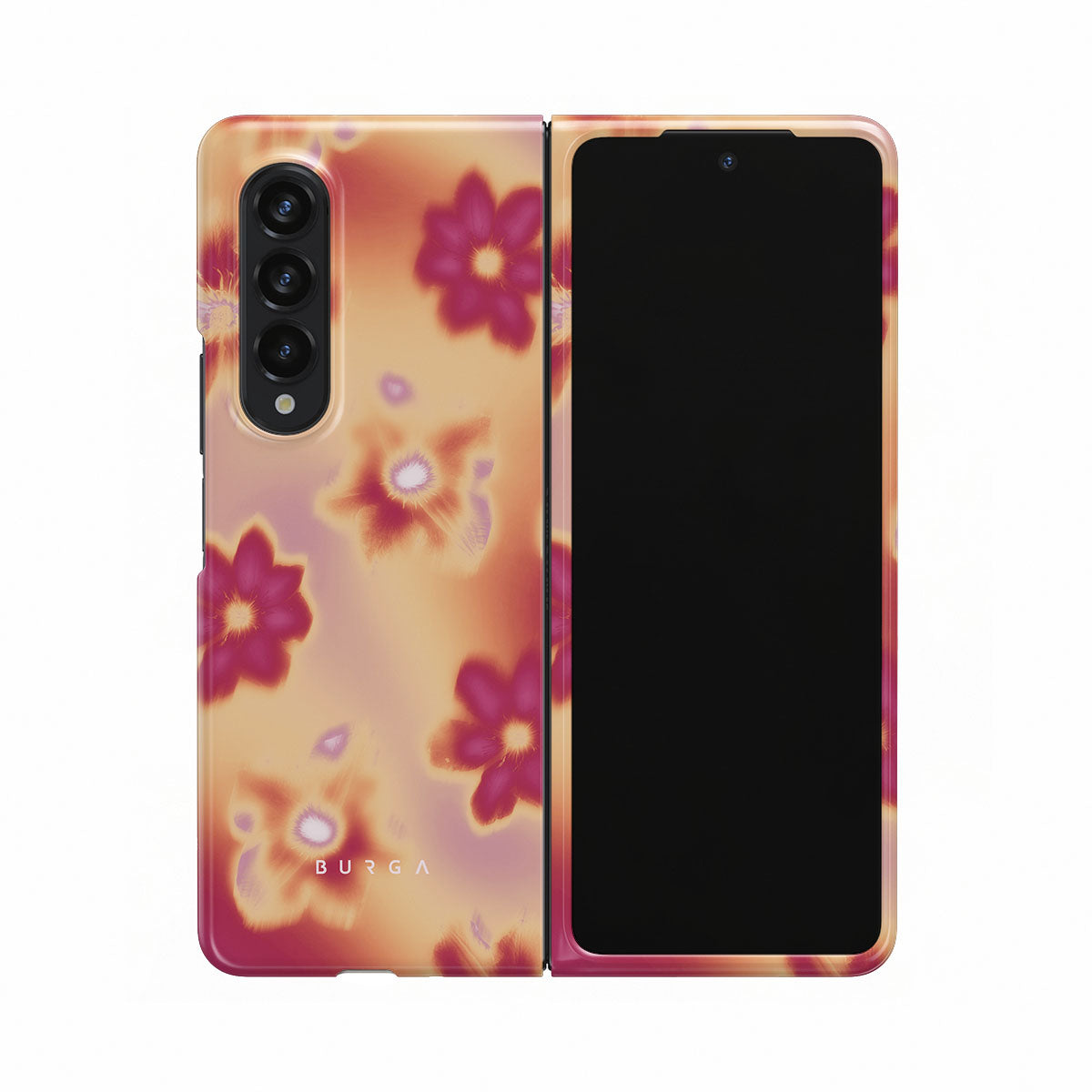 Get lost in the allure of our Divine Samsung Galaxy Z Fold 3 phone case design. Picture blossoms bathed in fiery hues of pink and orange, each seemingly charged with life's raw energy. Set against a canvas that radiates power and warmth, these flowers offer more than just beauty; they resonate with the essence that binds us all.