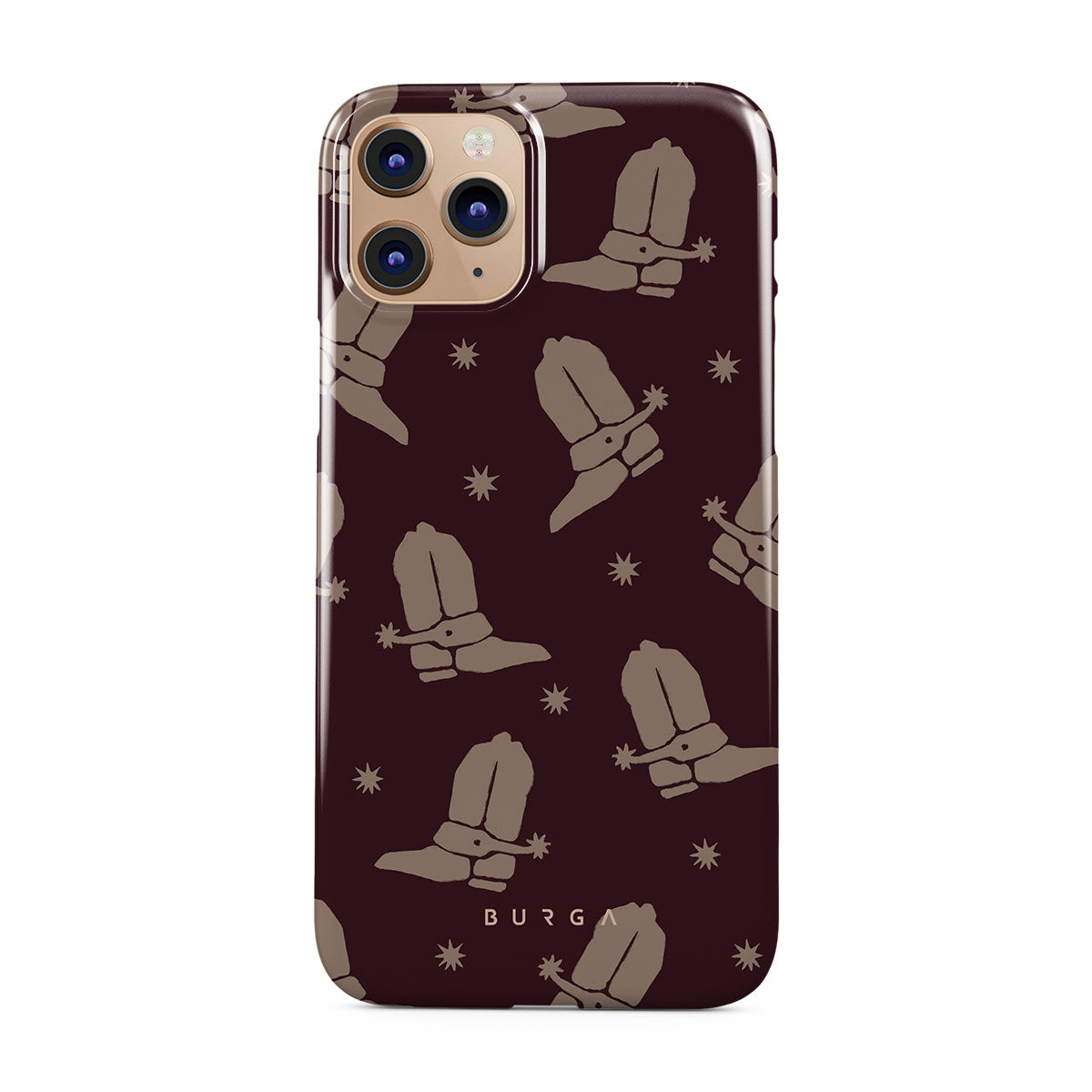 Say Howdy to this charming iPhone 11 Pro phone case design. Cowboy boots and stars dance across a deep brown background, celebrating the essence of western life. Perfect for those who embrace their free spirit.