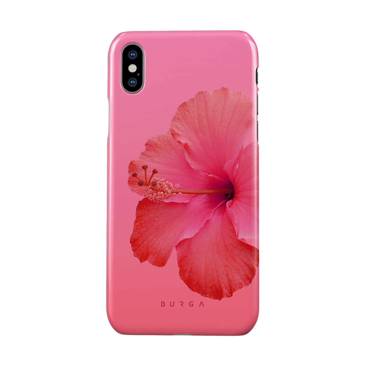 Our Island Girl iPhone XS Max phone case design bursts with the fiery red of a hibiscus in full bloom against a dreamy pink backdrop. Perfect for those who embody the spirit of a sun-kissed island retreat.