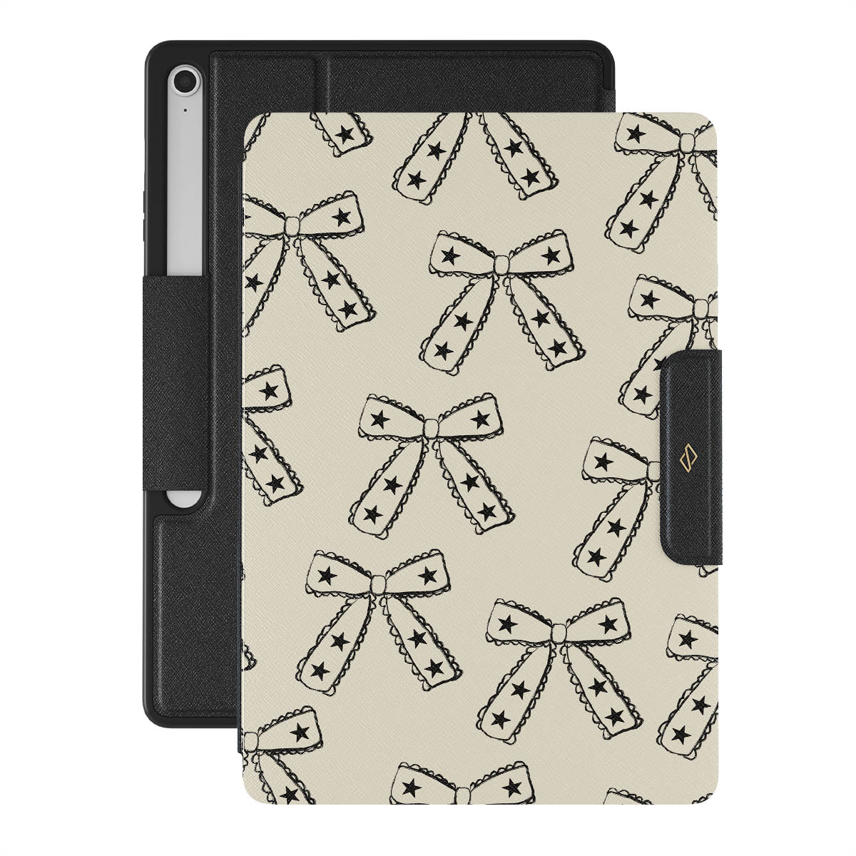 Shine on, Lone Star. Starry bows on a beige background bring a fun twist to your look. This Samsung Galaxy Tab S10+ FE folio case design is ideal for those who march to the beat of their own drum and make their own fashion rules.