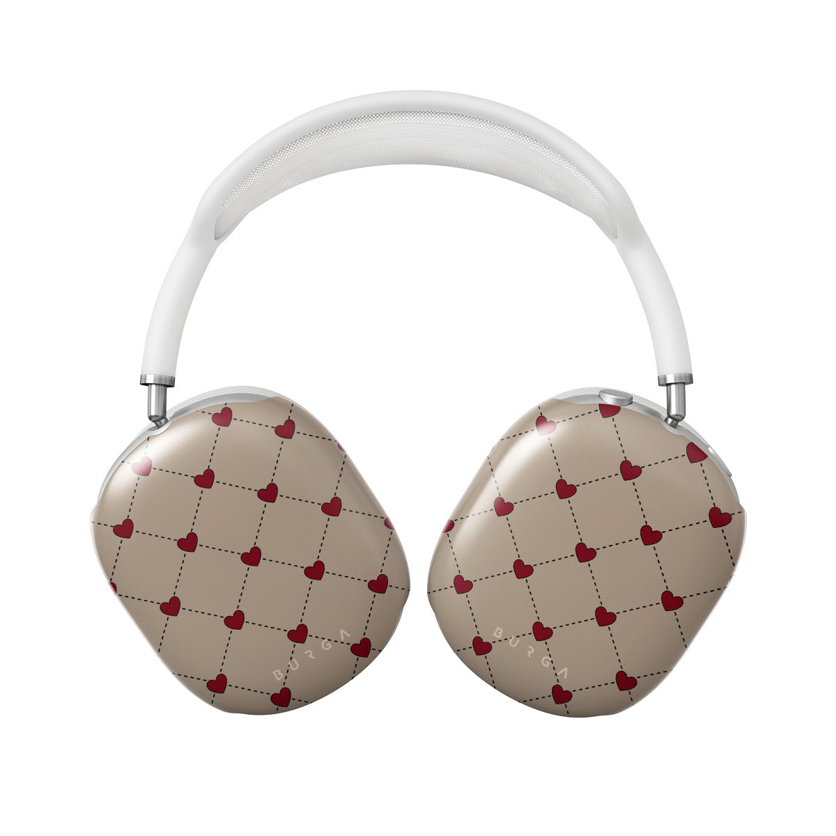 Secrets of the heart whispered between elegant beige diamonds. Every moment, a red heart shimmers—a hidden message, a silent wish, a love letter to the beholder. Discover our Love Letter Apple AirPods Max case cover design.