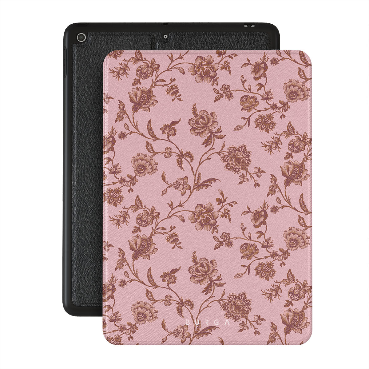 The Lover iPad 10.2 (9th/8th/7th Gen) folio case design: because you're a Lover, not a fighter. Delicate floral motifs across a soft pink background capture the essence of timeless beauty and rustic elegance. Perfect for modern-day cowgirls with a vintage heart.