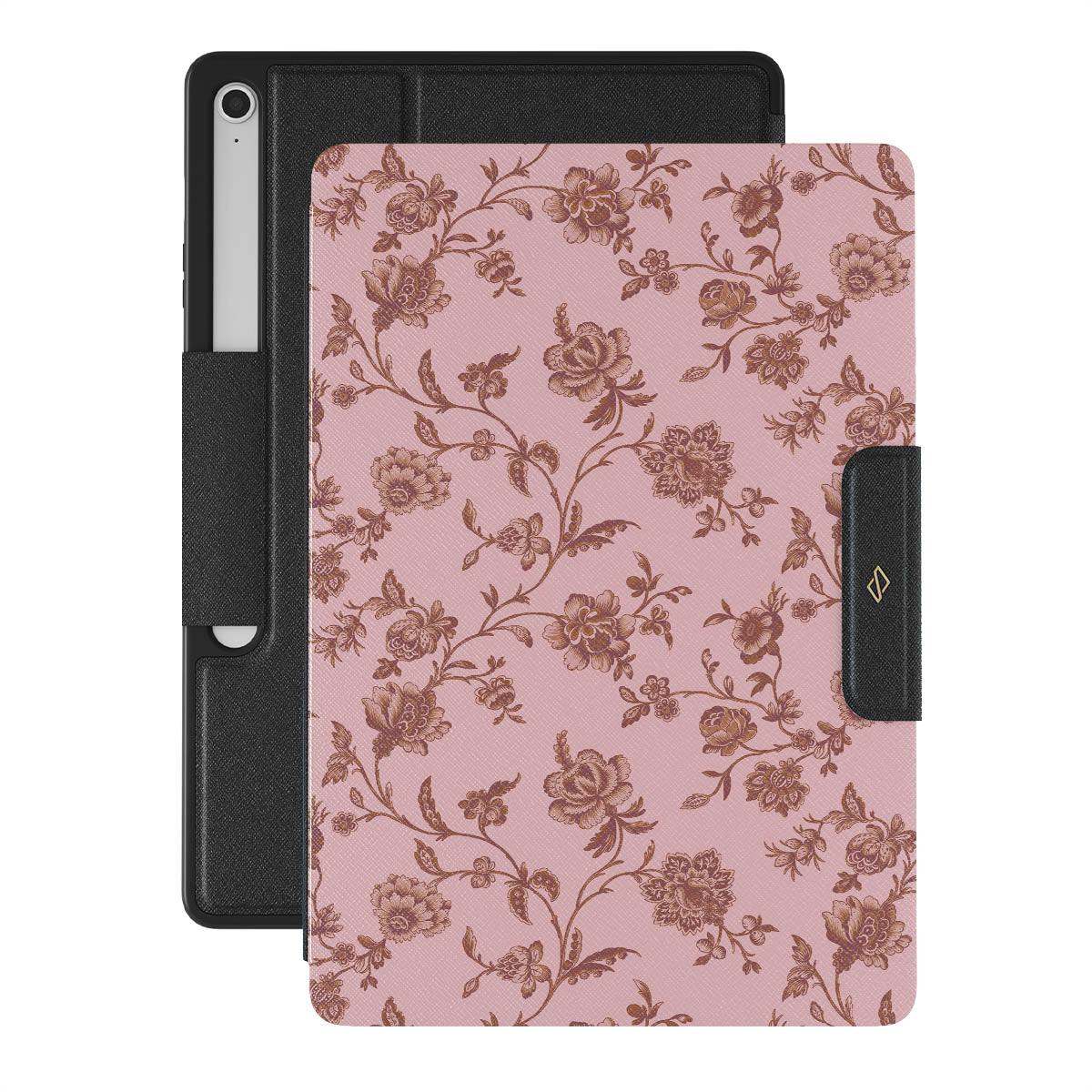 The Lover Samsung Galaxy Tab S10+ FE folio case design: because you're a Lover, not a fighter. Delicate floral motifs across a soft pink background capture the essence of timeless beauty and rustic elegance. Perfect for modern-day cowgirls with a vintage heart.