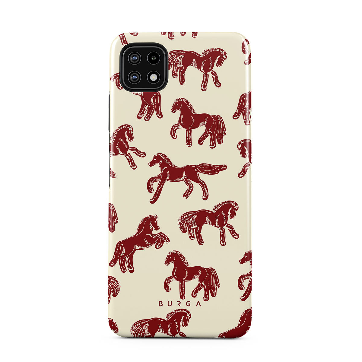 It's time to unleash your wild side with the Mustang design. Bold red horses gallop across a nude background, capturing the spirit of untamed adventure. This Samsung Galaxy A22 5G phone case is perfect for the free-spirited souls ready to ride into the unknown.