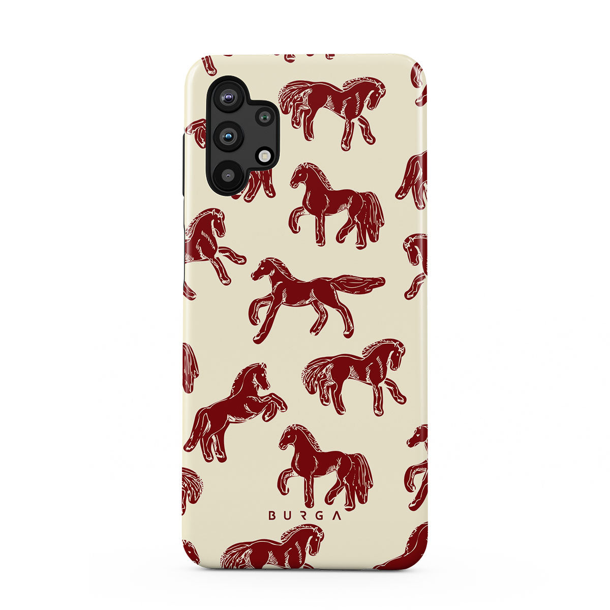 It's time to unleash your wild side with the Mustang design. Bold red horses gallop across a nude background, capturing the spirit of untamed adventure. This Samsung Galaxy A32 5G phone case is perfect for the free-spirited souls ready to ride into the unknown.