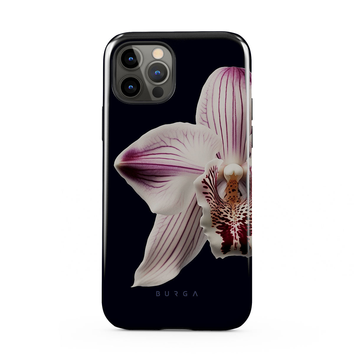 The white orchid blooms boldly upon a night sky blue, a beacon of clarity in the darkness. Our Nectar iPhone 12 Pro phone case design speaks to the soul's desire to find light within, to illuminate the hidden paths of self-discovery that only reveal themselves under the cloak of introspection.