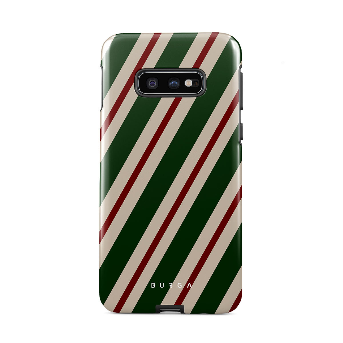A joyful design that screams holiday spirit. Our North Pole Samsung Galaxy S10E Case phone case transports you straight to Santa's workshop. Bold green, red, and white stripes echo the joy and laughter of elves preparing for the festive season.