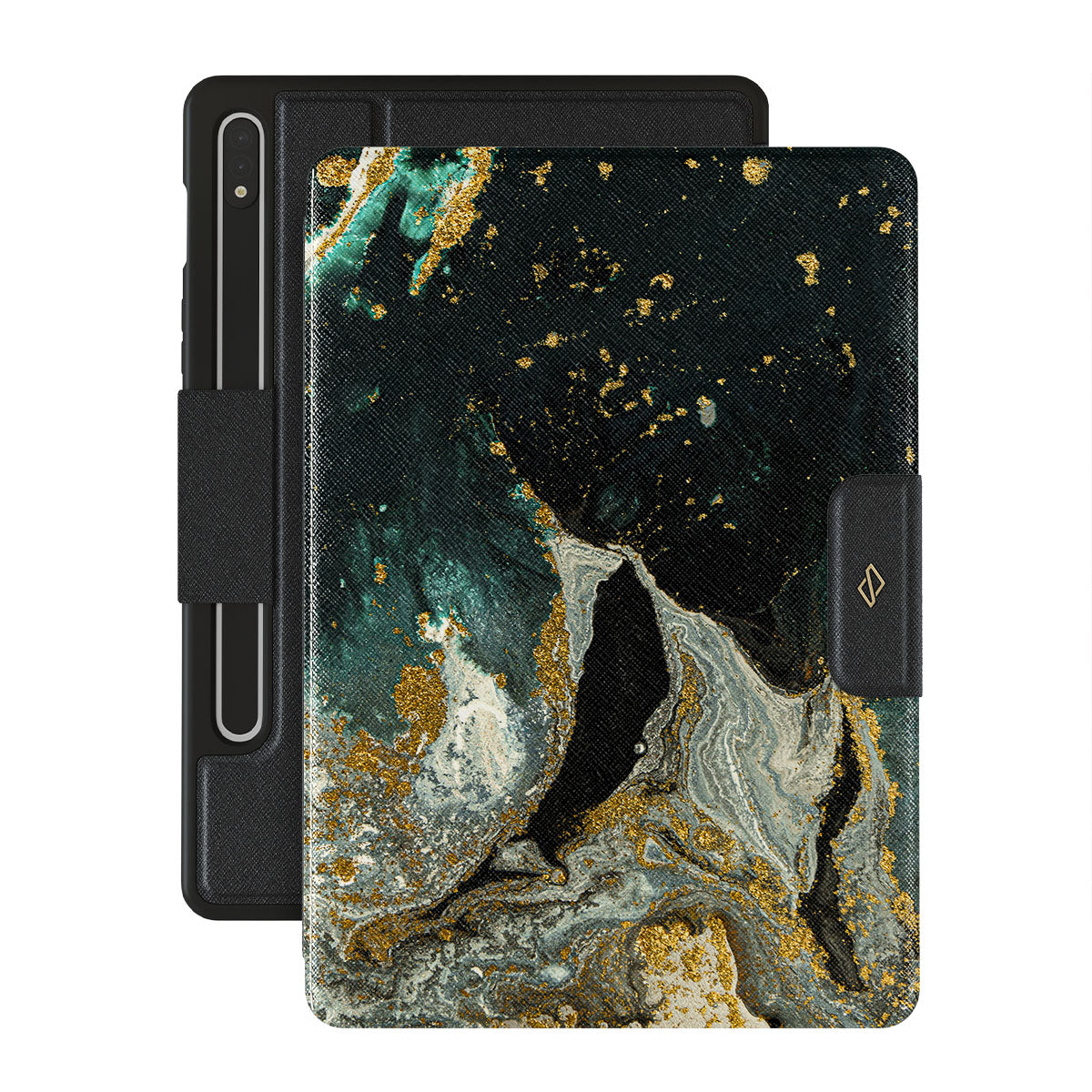 Our cute marble Northern Lights Samsung Galaxy Tab S8+/S7+/S7 FE folio case showcases a combination of moss green shades in a marble pattern enriched with golden specks. The asymmetrical design reminding of a star map will add a touch of luxury and mystery to every accessory lover's collection.
