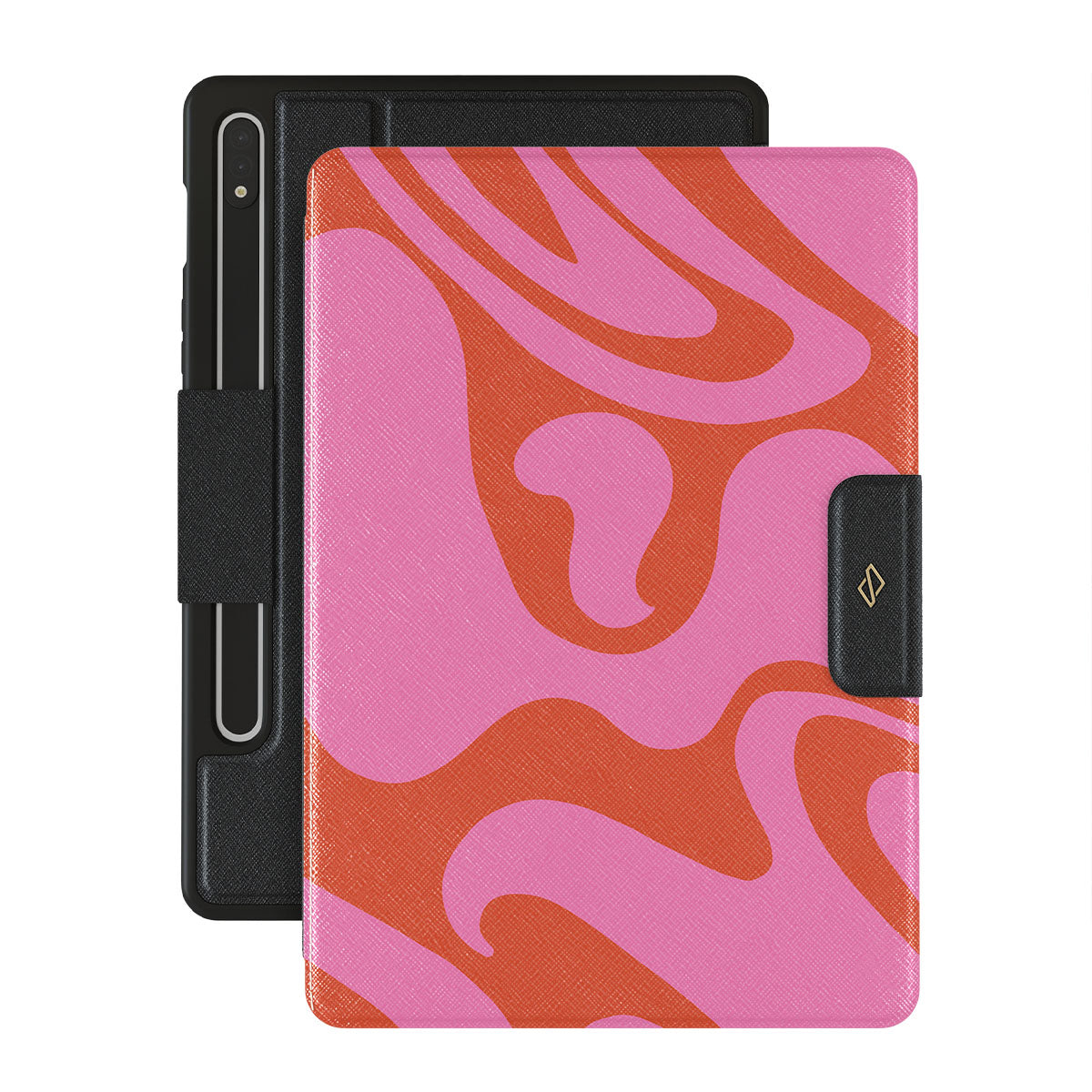 Bold and big take of a liquid swirl can be met in our Ride the Wave Samsung Galaxy Tab S8+/S7+/S7 FE folio case. It will not only turn your device into a beautiful art piece but will also keep it safe and sound while encasing it in a design from a 70s art gallery!