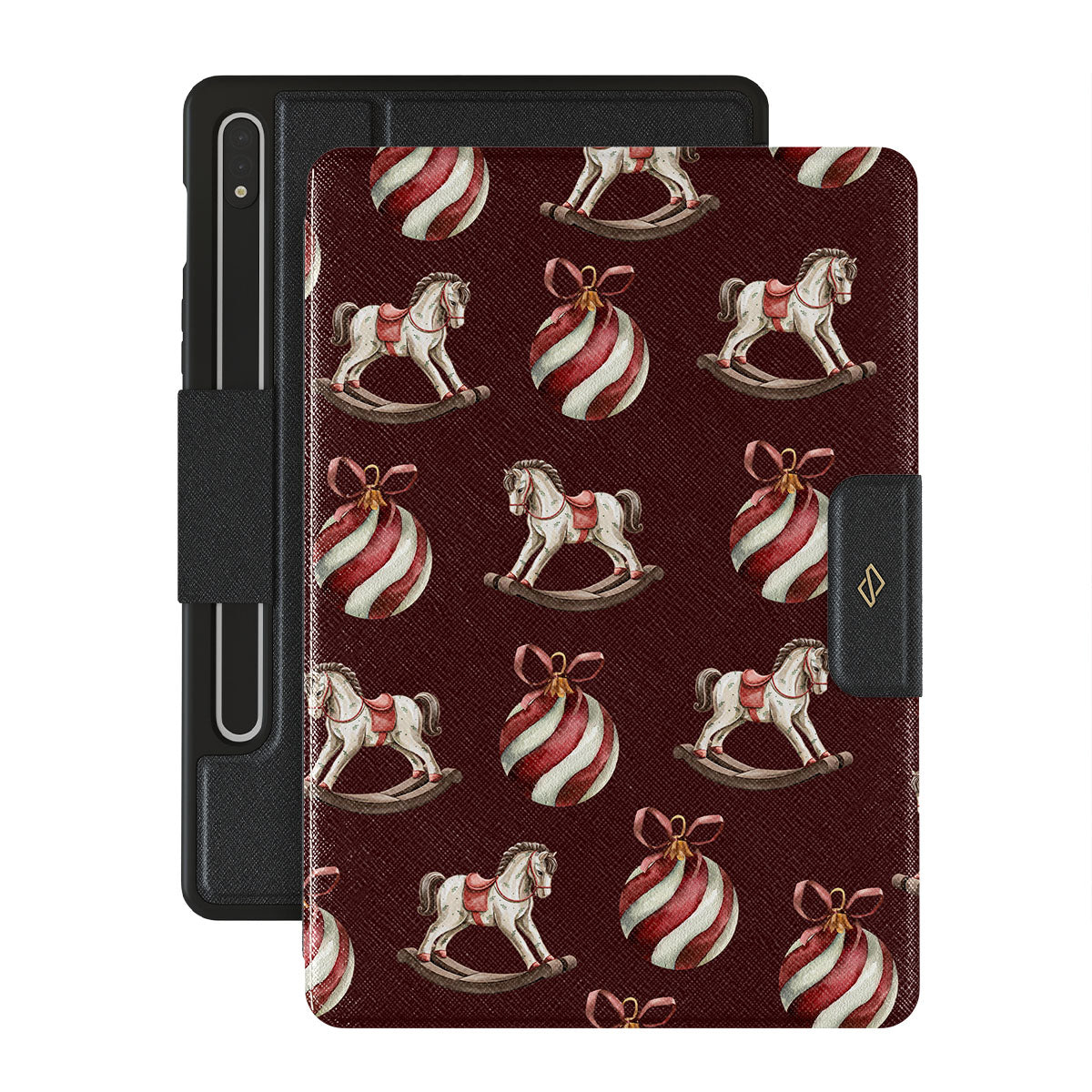 Jingle all the way with this playful Samsung Galaxy Tab S8+/S7+/S7 FE folio case design. Featuring rocking horses and candy-striped bells, our Rocking Around design transports you back to childhood moments of decorating the tree and waiting for Santa. It’s the ultimate throwback to vintage Christmas charm.
