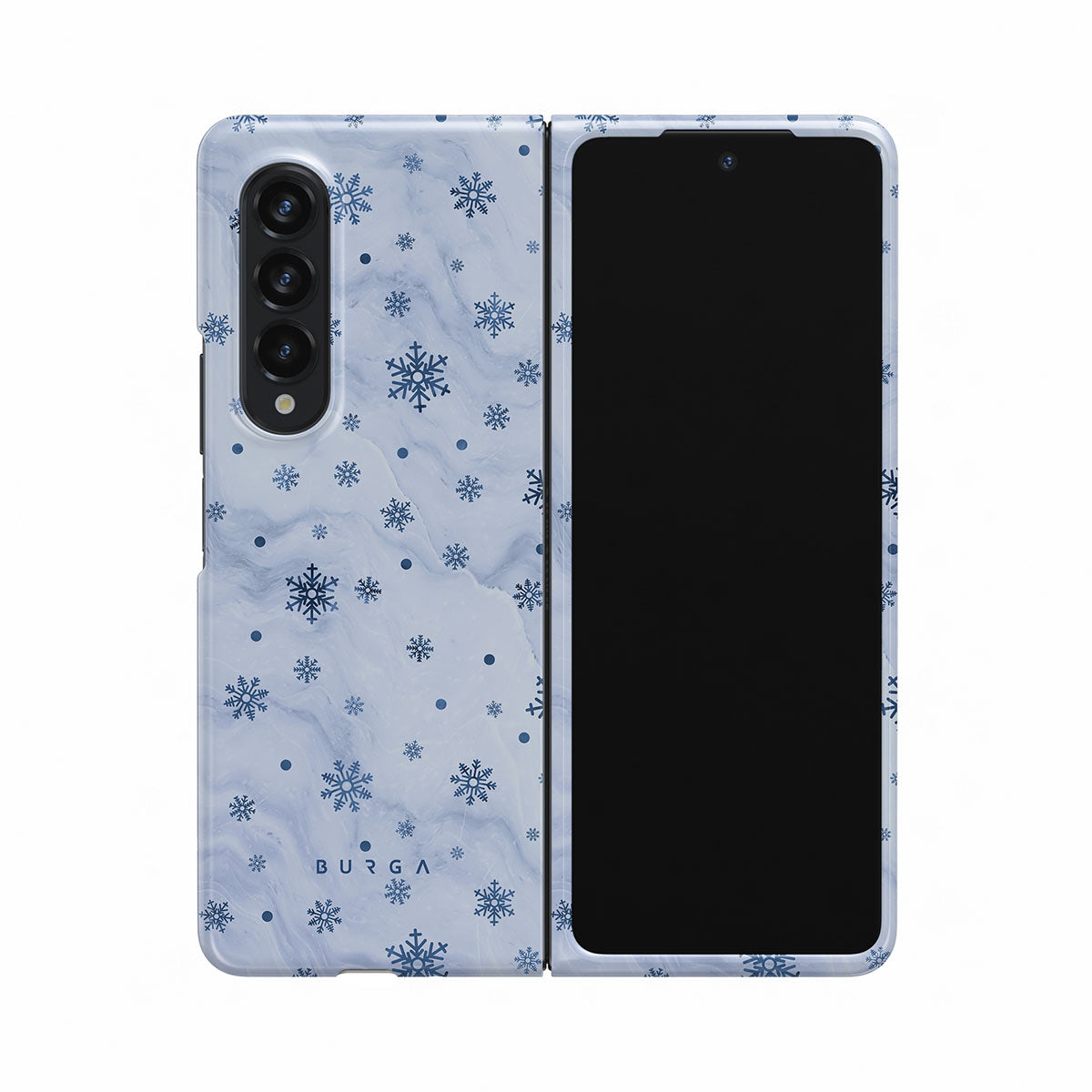 Our Ice Queen Samsung Galaxy Z Fold 3 phone case combines the softest light blue marble design with a minimalistic snowflake pattern, this way creating the ever-mesmerizing effect of elegant snowflakes dance that only the magical winter days are known for. Keep your device looking elegant while keeping it safe and sound.
