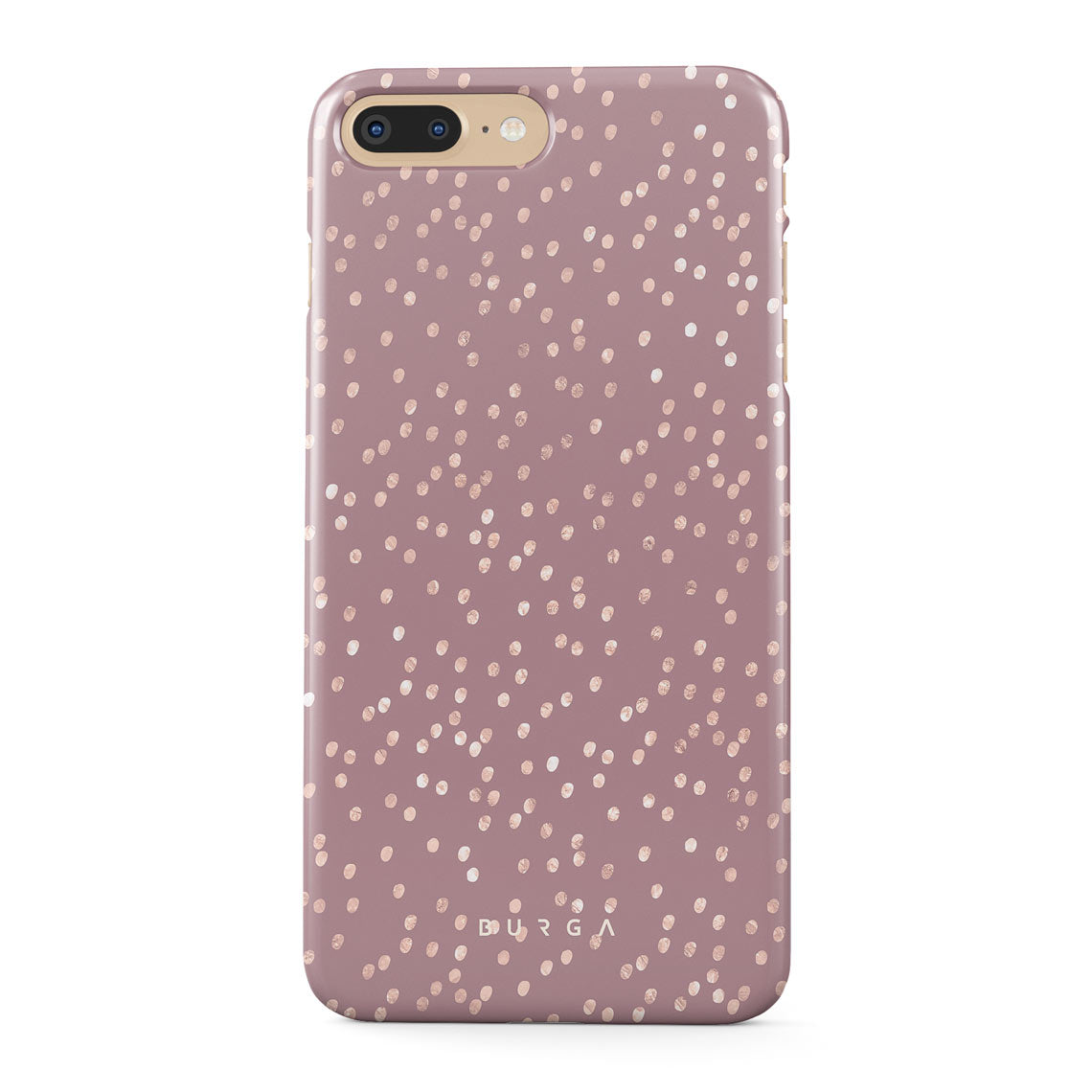 Trendy mauve color as a background for the gold-colored spots creates true beauty. Make your iPhone 7 Plus 8 Plus stand out with our protective and pretty Hot Cocoa phone case. The spotted pattern adds a touch of luxury to your phone, while the case's hard-shell nature offers much-needed protection.