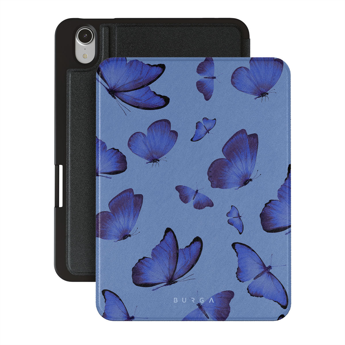 Bright blue butterflies dance across a sky-blue expanse, a visual representation of freedom and transformation. Our Spring Court iPad Mini 8.3 (A17 Pro/6th Gen) 2021 folio case design symbolizes the soul's eternal dance with change, each flutter a step towards becoming who we are meant to be.