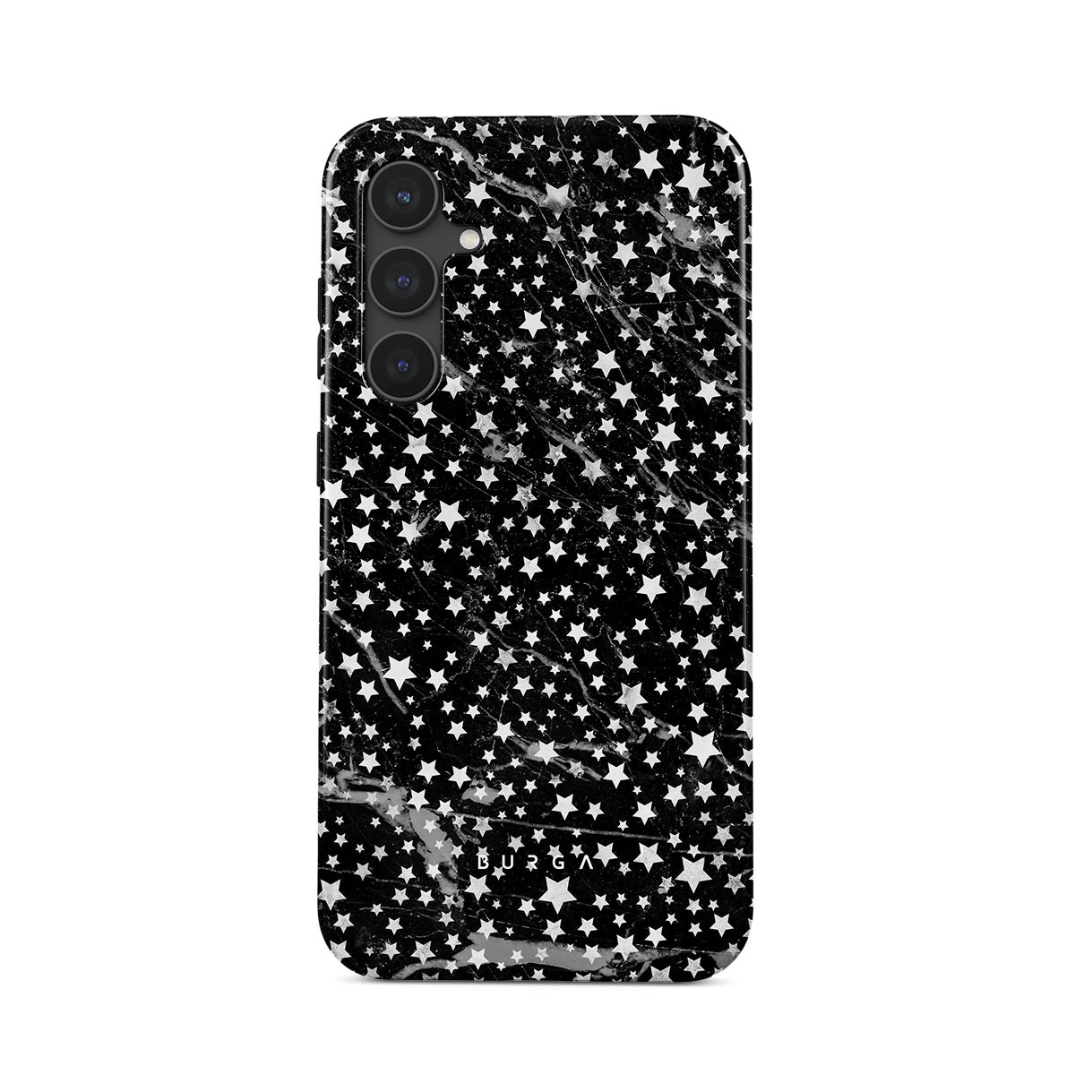 Samsung Galaxy S23 FE phone case is inspired by the sky above us. Here the charming star pattern meets with a trendy black and white marble. Add the unique combination to your wardrobe and transform your protective phone case into a fashion accessory.