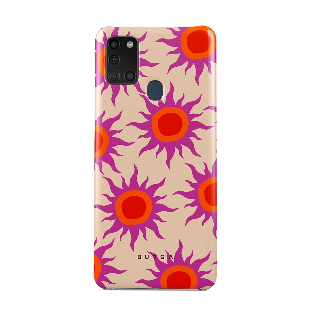 Discover the radiant serenity of the Sunset Glow design, a harmonious blend of soothing pastels and fiery suns. Vivacious viva magenta rays add a playful touch, perfectly balancing tranquility and dynamism. More than just a fashion accessory, this striking Samsung Galaxy A21s 4G phone case mirrors your unique personality and zest for life.