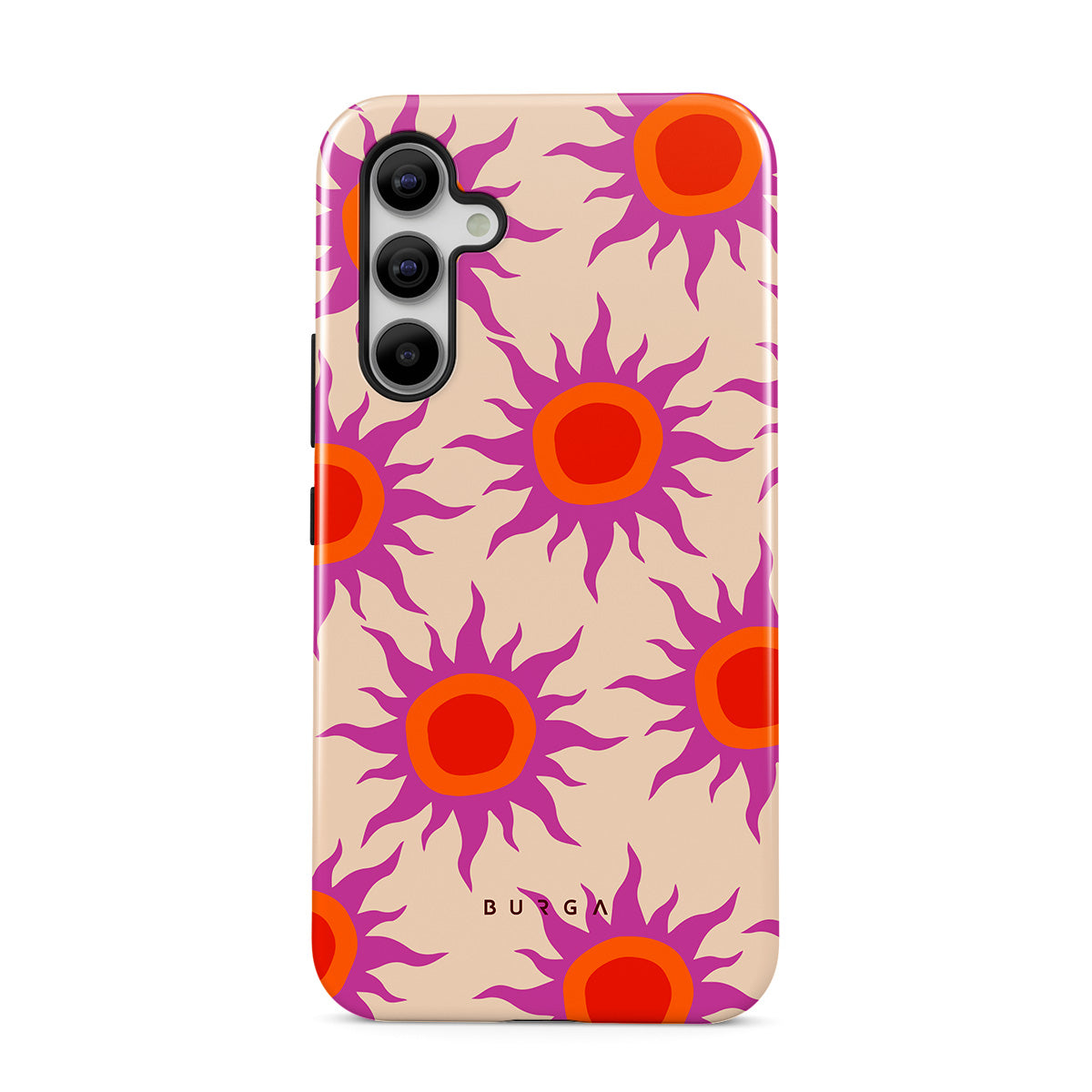 Discover the radiant serenity of the Sunset Glow design, a harmonious blend of soothing pastels and fiery suns. Vivacious viva magenta rays add a playful touch, perfectly balancing tranquility and dynamism. More than just a fashion accessory, this striking Samsung Galaxy A54 phone case mirrors your unique personality and zest for life.