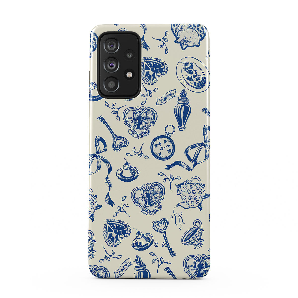 The Tea Party Samsung Galaxy A52 / A52S 4G / 5G phone case design is a porcelain puzzle—ribbons tangled, time warped, rules rewritten. Sit down, pour a cup, but don’t expect things to make sense. They never do.